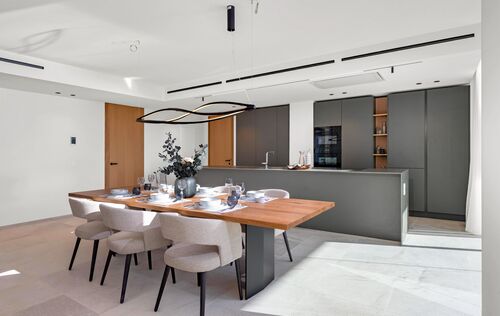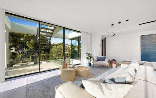 Det exklusiva nybygget Ever Marivent byggs på ett lugnt men ändå centralt läge i Cala Major, bara några meter från det spanska kungliga palatset Marivent. Det består av 14 högkvalitativa nybyggda lägenheter med 2 till 4 sovrum i två sydvästvända byggnader med modern arkitektur. Ever Marivents gemensamma faciliteter inkluderar 2 inbjudande pooler med rymliga solterrasser, medelhavsträdgårdar, ett luftkonditionerat fitness- och spa-område och 2 underjordiska garage. Palma centrum ligger bara cirka 10 minuter bort med bil och den vackra sandstranden Cala Major kan nås till fots på några minuter. Förutom det goda läget och den högkvalitativa utrustningen har de ljusa bostäderna i Ever Marivent en fantastisk havsutsikt! Även de flesta av trädgårdslägenheterna har en vacker havsutsikt. Tack vare de stora fönsterpartierna i vardagsrummet och i sovrummen kan du njuta av utsikten från olika delar av lägenheten. Ett annat plus med alla enheter är de öppna planlösningarna och de rymliga, delvis täckta terrasserna. Hjärtat i varje bostad är vardagsrum och matplats med integrerat kök med matlagningsö och direkt tillgång till terrassen. Många sovrum har också tillgång till privata utomhusområden. Det största sovrummet har alltid eget badrum och beroende på enhetens storlek finns ytterligare 1-3 sovrum och 1-2 badrum. Förutom stora terrasser på vardagsrumsnivå erbjuder takvåningarna också en privat takterrass med fantastisk havsutsikt. Här kan du njuta av underbara solnedgångar med ett glas vin eller grillkvällar med vänner. Den högkvalitativa utrustningen i lyxlägenheterna inkluderar golvvärme, luftkonditionering, inbyggda apparater från Miele eller liknande, inredning från ICONICO, naturstengolv "Gris Zarci", KNX Smart Home System eller liknande, och mycket mer. I köpeskillingen för varje enhet ingår 2 underjordiska parkeringsplatser, varav en har en laddningsstation för elbilar. Ever Marivent är en liten oas nära staden och stranden, som erbjuder dig en hög levnadsstandard och massor av bekvämligheter. En lägenhet i detta komplex är därför inte bara den perfekta semesterfastigheten, utan också idealisk som året-runt-boende.