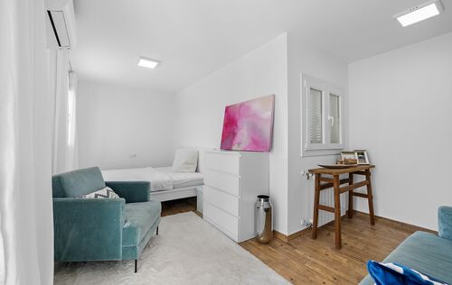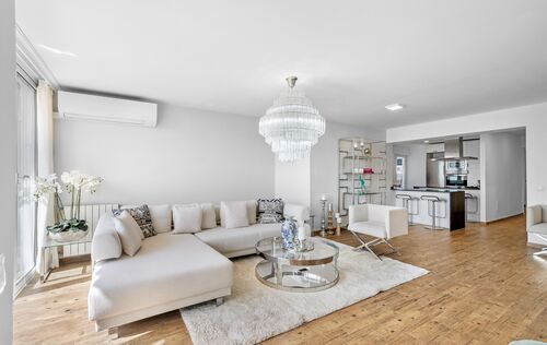 Upptäck denna exklusiva lyxiga takvåning i Palma, som kombinerar elegans, komfort och hisnande utsikt. Med en total yta på 250 m² erbjuder den 160 m² förfinad bostadsyta och en fantastisk 90 m² terrass perfekt för utomhusliv och underhållning. Fastigheten byggdes ursprungligen 1972 och totalrenoverades 2022 och har modern design och högkvalitativa ytbehandlingar. Takvåningen har fyra rymliga sovrum och tre badrum, inklusive en lyxig master-svit. Den öppna planlösningen förstärker det naturliga ljuset och erbjuder panoramautsikt över havet, hamnen och bergen från vardagsrummet och terrassen i sydostläge. Ytterligare funktioner inkluderar klinkergolv, inbyggda garderober, en säker entrédörr med tre lås, gasuppvärmning, full rullstolsanpassning, en hiss och en bekväm tvättstuga. Det finns också möjlighet att hyra en parkeringsplats i en närliggande byggnad för cirka 120 €/månad. Denna exceptionella takvåning är idealiskt belägen i ett av Palmas mest eftertraktade områden och erbjuder en unik möjlighet att njuta av en sofistikerad livsstil med oslagbar utsikt och moderna bekvämligheter.