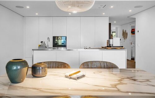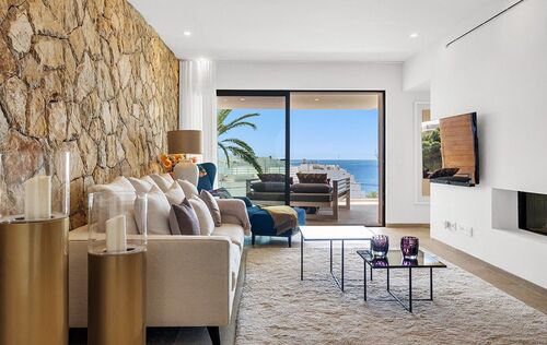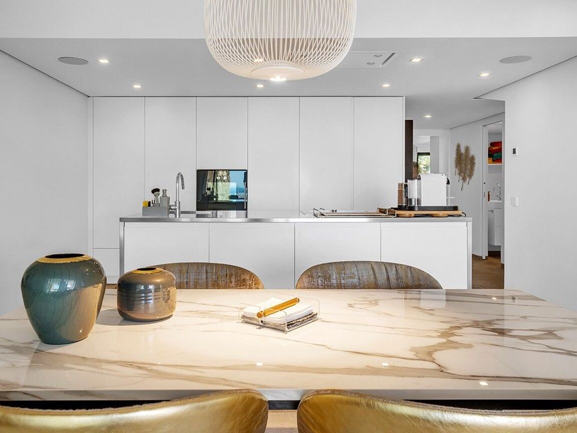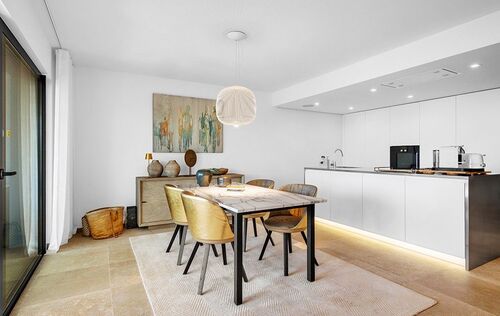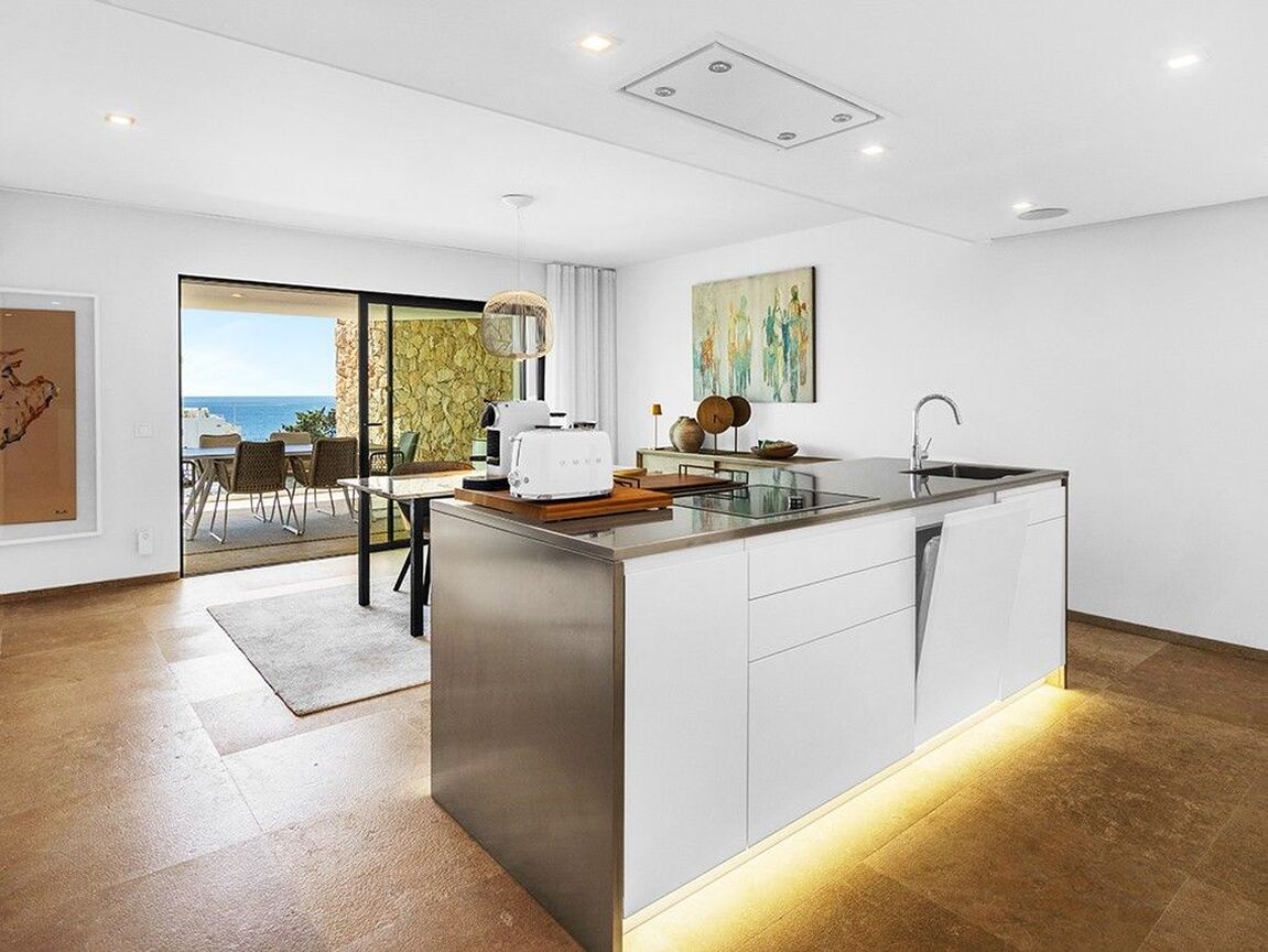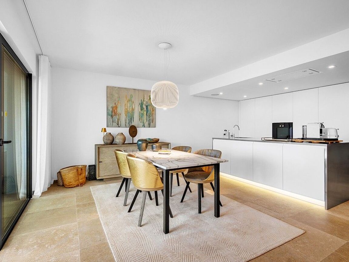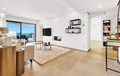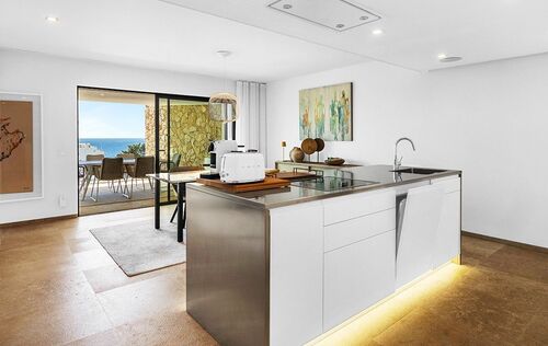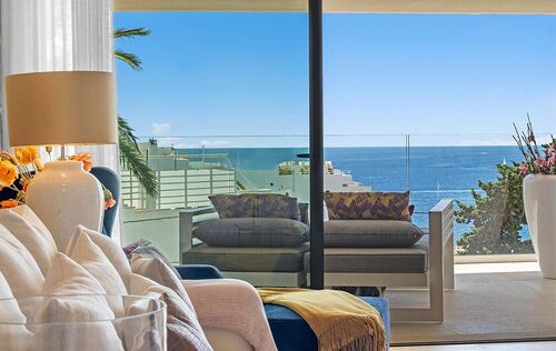 Modern lägenhet med havsutsikt och stora terrasser i exklusivt bostadsområde