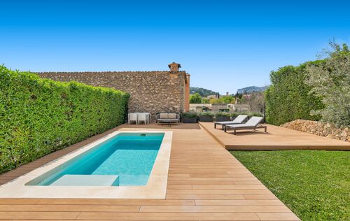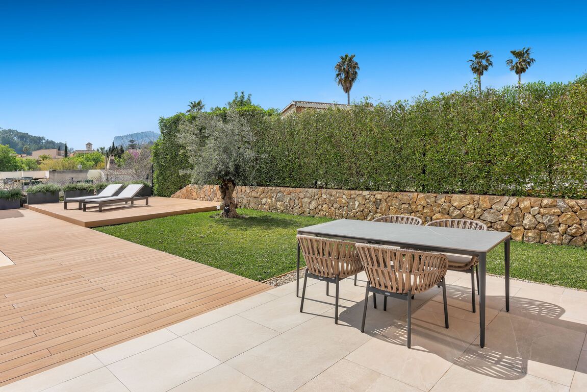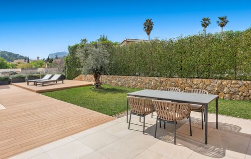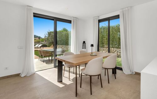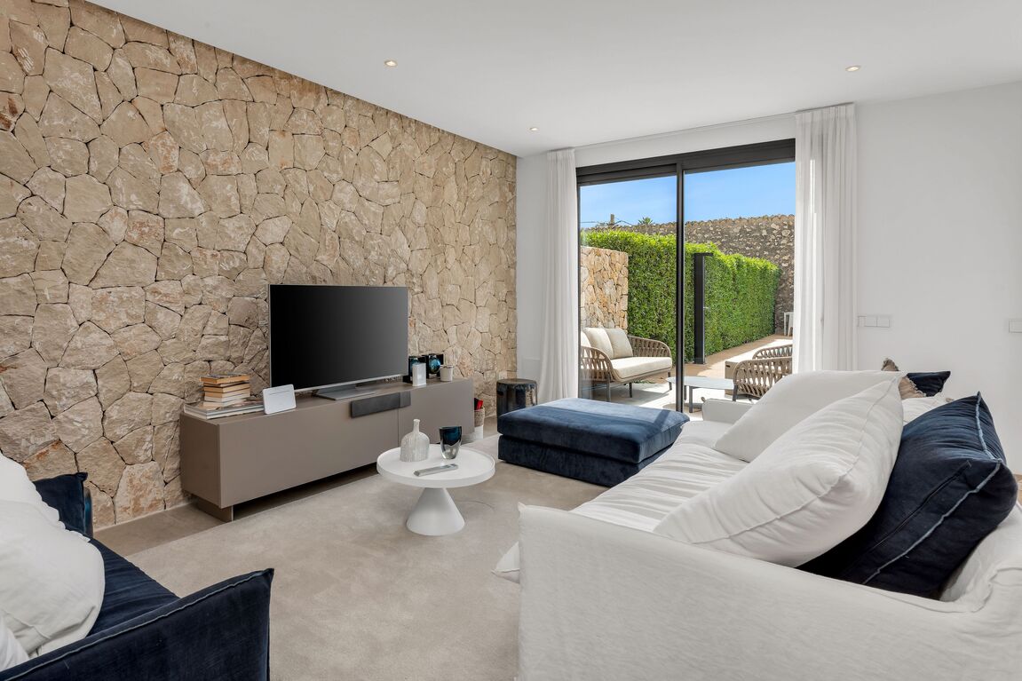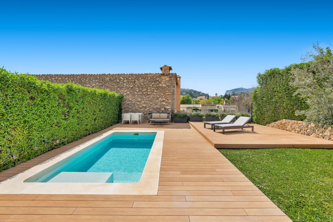This beautiful newly built townhouse is located in the idyllic village of Es Capdellà and combines modern living with Mediterranean charm. The house is tastefully furnished and offered fully equipped with high-quality furniture, allowing for immediate occupancy. The property features three spacious bedrooms and three modern bathrooms, ensuring maximum comfort. The open and bright living and dining area creates a welcoming atmosphere and provides direct access to the outdoor space. A particular highlight is the lovingly designed garden with a private pool – the perfect place to enjoy the Mediterranean climate, relax, or spend time with family and friends. In addition, the house offers a practical laundry room and 2 outdoor parking spaces. Underfloor heating and a modern air conditioning system ensure year-round comfort, providing a pleasant indoor climate in both summer and winter. This stylish townhouse in a მშვიდ quiet location in Es Capdellà combines high-quality finishes, modern design, and a natural setting – ideal as a permanent residence or an exclusive retreat in Mallorca.