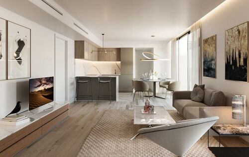 Detta moderna nybyggnadskomplex med 25 högkvalitativa lägenheter ligger i Palmas trendiga distrikt Santa Catalina. I närheten finns inte bara den välkända Santa Catalina-marknaden, utan också många bra restauranger, barer, kaféer och Palmas centrum med sina olika shoppingalternativ. Dessutom ligger den berömda Palma Sport and Tennis Club inom gångavstånd och erbjuder ett brett utbud av sport- och hälsofaciliteter. Trots sitt urbana läge erbjuder komplexet de boende många bekvämligheter, vilket gör det till ett idealiskt boende för dem som värdesätter komfort och fritid. Här finns ett stort underjordiskt parkeringsgarage med 40 platser och 21 förråd, 2 hissar, ett fitnessrum och ett vackert utomhusområde med en gemensam pool och solterrass, där man kan njuta av den mallorkinska solen till sent på kvällen. De 25 genomtänkt designade lägenheterna med öppna vardagsrum och matplatser och privata terrasser har en minimalistisk, modern design. De mindre enrumslägenheterna ligger på de nedre 3 våningarna. På 4:e och 5:e våningen hittar du större lägenheter och takvåningar med antingen 2 dubbelrum eller 2 dubbelrum och ett extra barn- eller arbetsrum. Takvåningarna har också en stor privat takterrass med fantastisk panoramautsikt och delvis havsutsikt. Här, i hjärtat av öns huvudstad, kan du skapa din egen lilla privata oas. För ett behagligt boende året runt finns luftkonditionering och golvvärme. Detta nya bostadsprojekt är ett uttryck för högkvalitativt modernt boende i ett av de mest eftertraktade områdena i Palma.