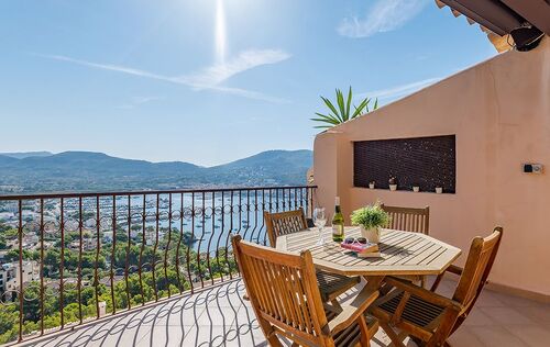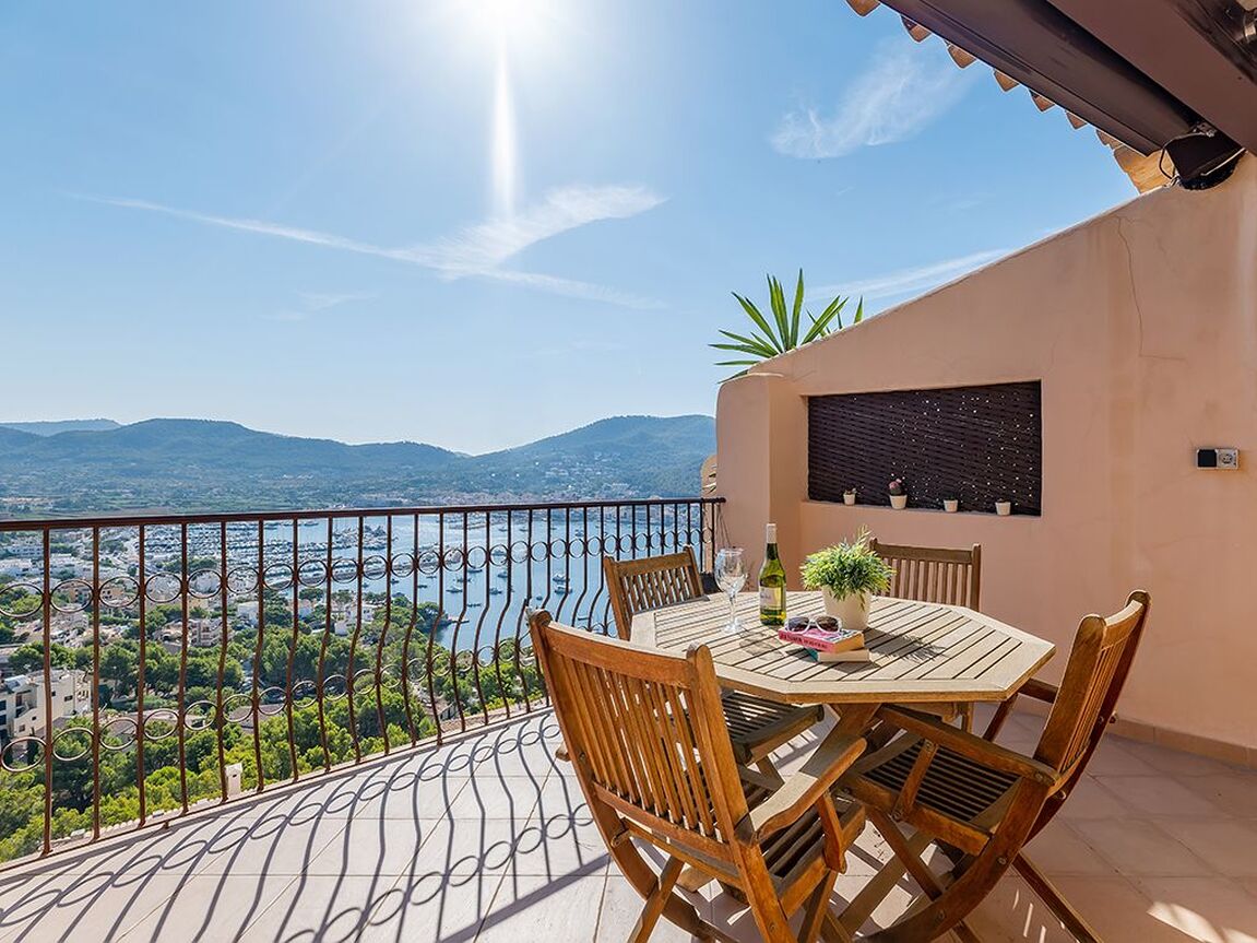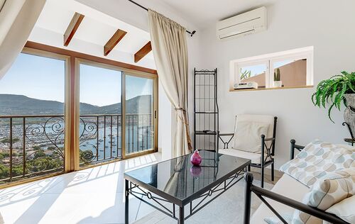 Denna charmiga takvåning i två plan ligger i Port Andratx, den framstående fiske- och segelbåtshamnen på den exklusiva sydvästra delen av Mallorca. Takvåningen ligger på sydostsidan av en kulle och har en oslagbar panoramautsikt över hela hamnen, hamninloppet och det omgivande landskapet med Tramuntana-bergen i bakgrunden. Huset har totalt tre sovrum och två badrum. De delvis täckta och öppna terrasserna är fördelade på olika nivåer och erbjuder mycket avskildhet. Denna fastighet renoverades mycket smakfullt 2016 med medelhavsmaterial. Det välskötta gemensamma komplexet har en rymlig pool och ytterligare gemensamma terrasser. Andra funktioner i denna unika fastighet inkluderar luftkonditionering w / c, golvvärme i hela lägenheten, öppen spis, wifi och ett fullt utrustat kök.