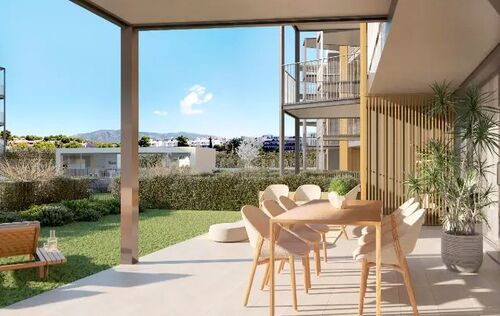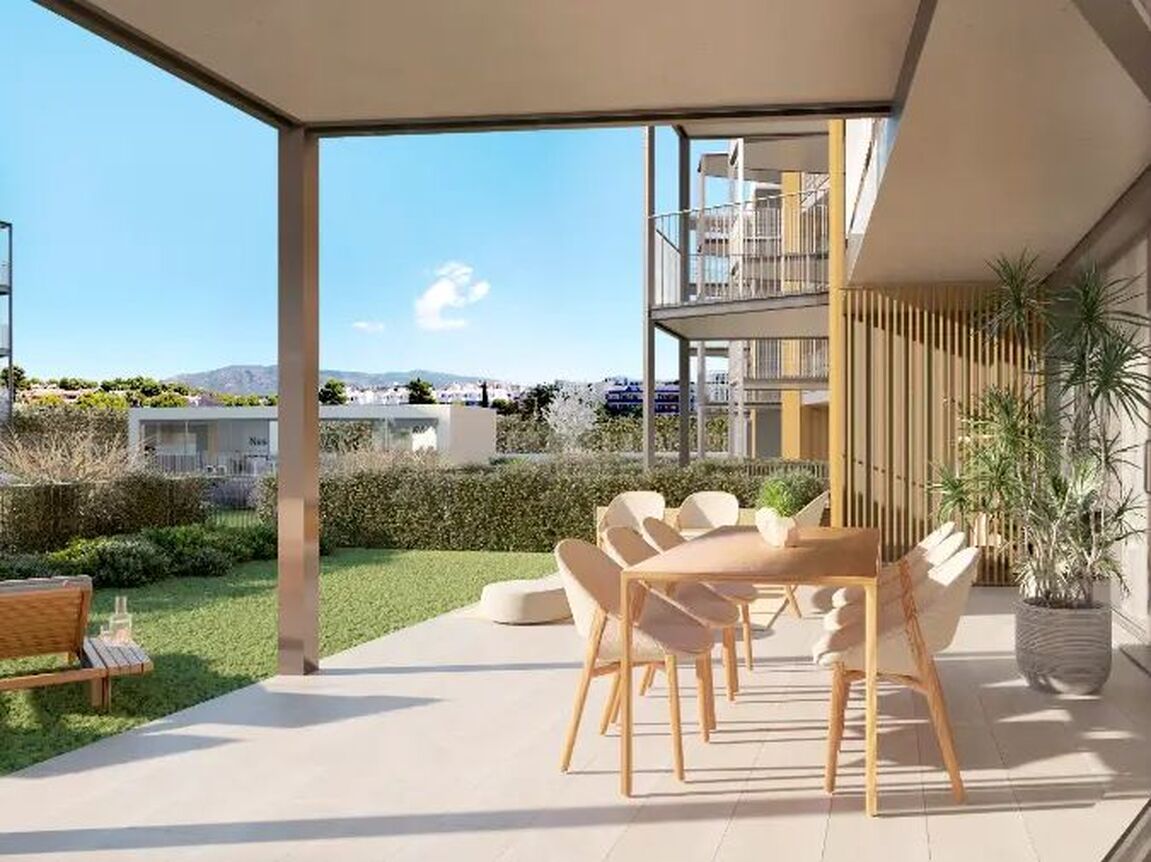 Trädgårdslägenhet i ett modernt nybyggt komplex med en stor gemensam pool
